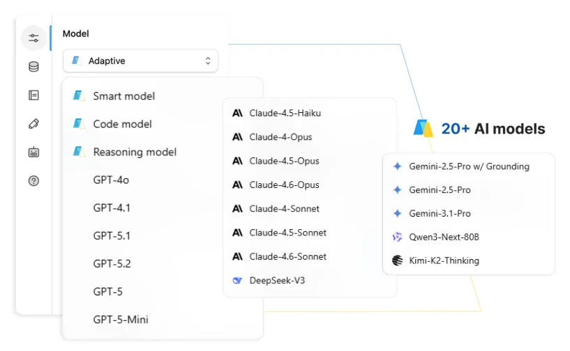 Switch models per conversation or workflow to match the complexity of each task.